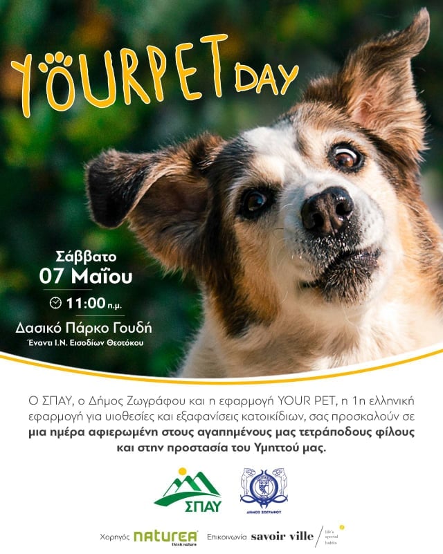 Ο Δήμος Ζωγράφου με την εθελοντική ομάδα του, ο Σύνδεσμος Προστασίας & Ανάπτυξης Υμηττού (ΣΠΑΥ) και η εφαρμογή YOUR PET, η πρώτη ελληνική εφαρμογή για υιοθεσίες και εξαφανίσεις κατοικίδιων, σας προσκαλούμε σε μια ημέρα αφιερωμένη στους αγαπημένους μας τετράποδους φίλους και στην προστασία του Υμηττού μας.