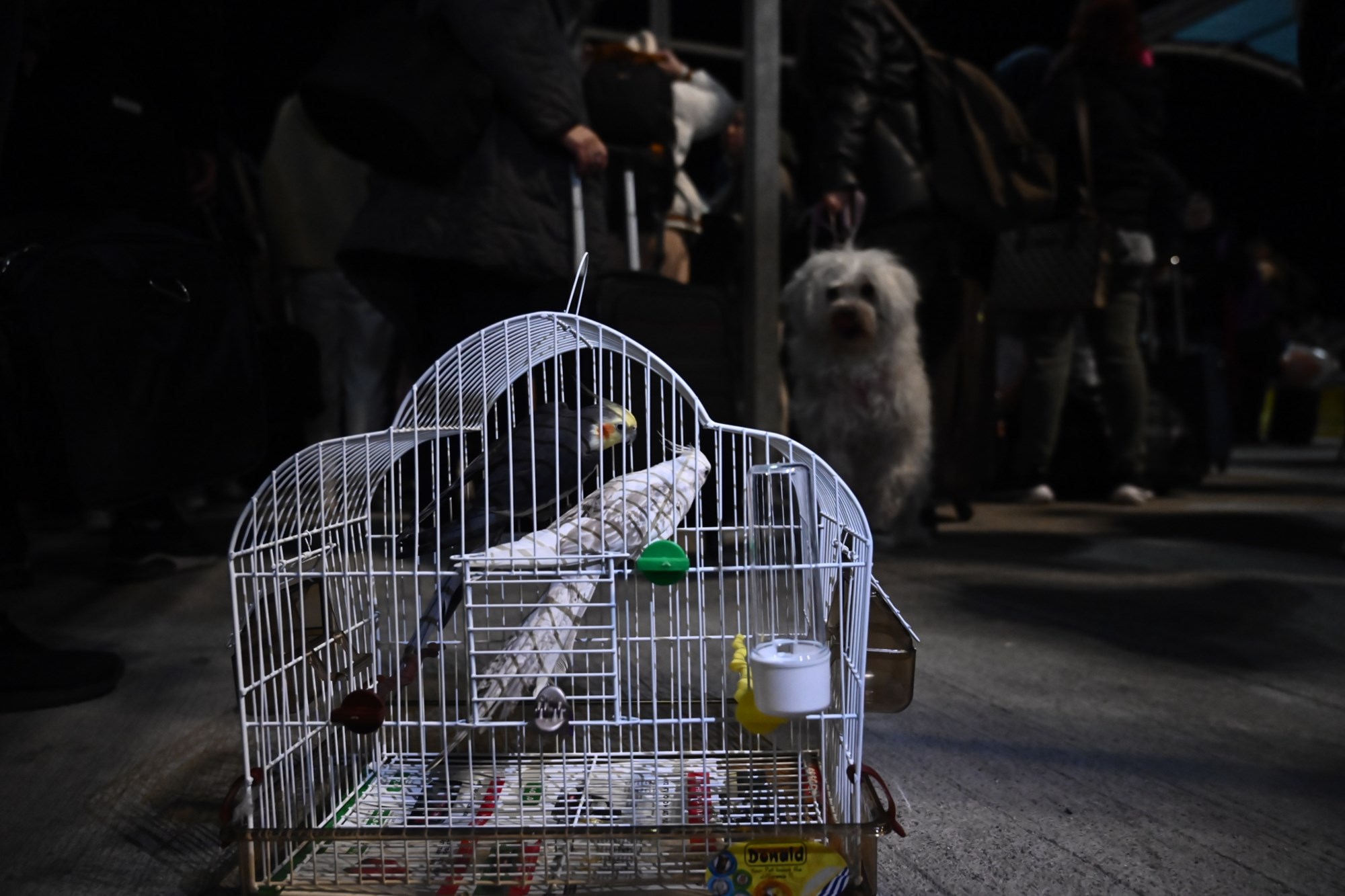 Με βαλίτσες γεμάτες, τα παιδιά στην αγκαλιά τους και τα κατοικίδιά τους.