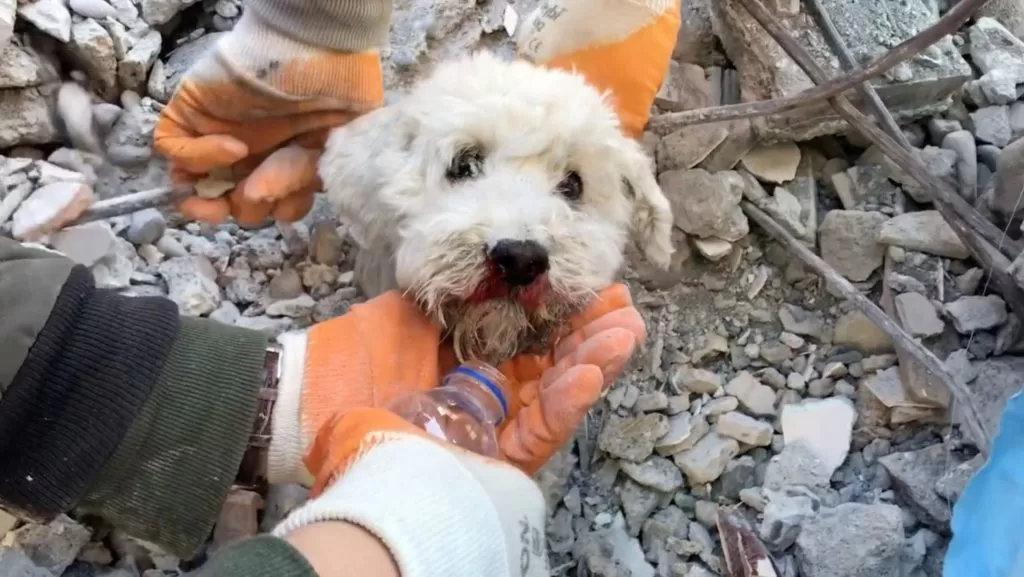 Βίντεο που κυκλοφορεί στο Twitter δείχνει ένα μικρό λευκό σκυλάκι στο Ισκεντερούν, θαμμένο στα συντρίμμια να ανασύρεται αφού οι διασώστες το εντόπισαν μετά από έρευνες σε ένα πεσμένο κτίριο.